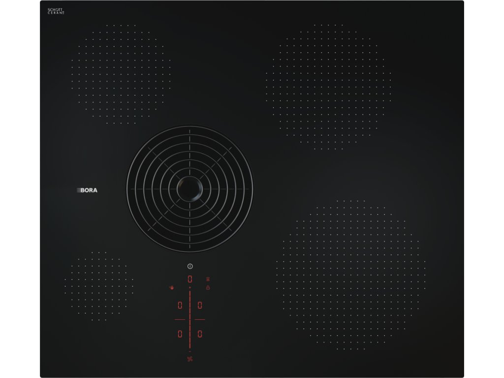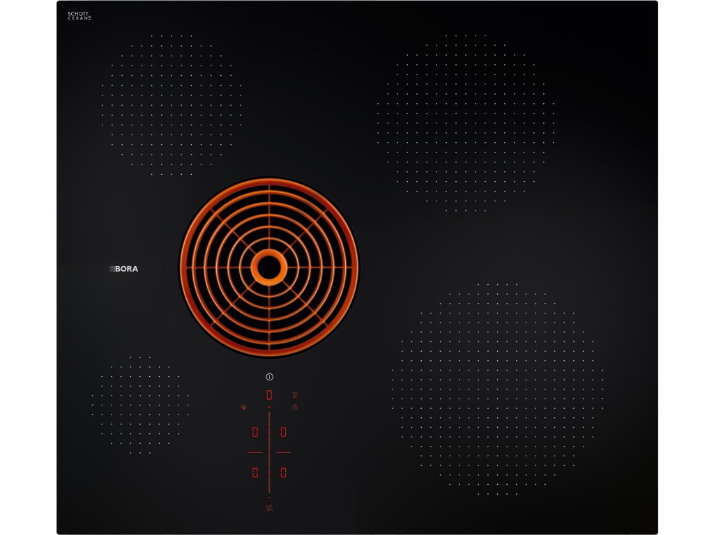 Sofistikovaná technologie pro špičkový výkon: díky indukčním cívkám vyvinutým speciálně pro BORA lze optimálně využít celý povrch varné desky. Na čtyři varné zóny různých velikostí lze umístit hrnce a pánve všech běžných rozměrů. A co víc, díky tichému ventilátoru je odsavač sotva slyšitelný i při vysokém výkonu.