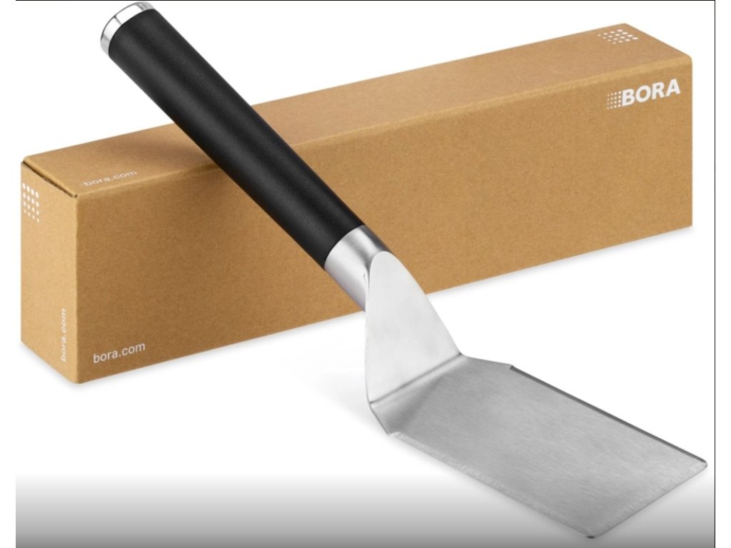 Profesionální kuchyňský nástroj pro nerezový gril BORA Tepan řady Professional a Classic Snadné otáčení všech druhů potravin Ergonomická rukojeť s prohloubeným úchopem Široká špachtle a zaoblené hrany Ideální pro čištění BORA Tepan v kombinaci s hadříkem.