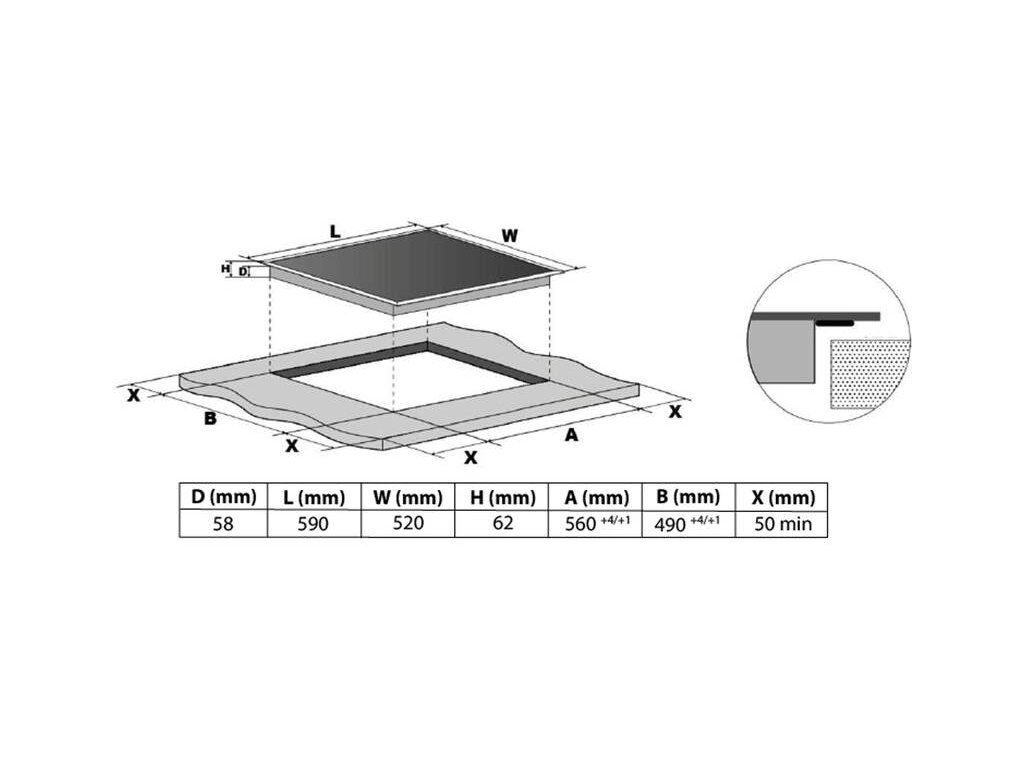 - 4 varné zóny: 2 300 W, 1 300 W, 2× 1 800 W
