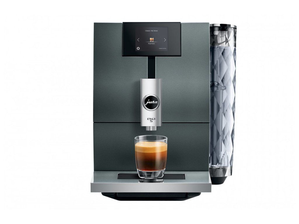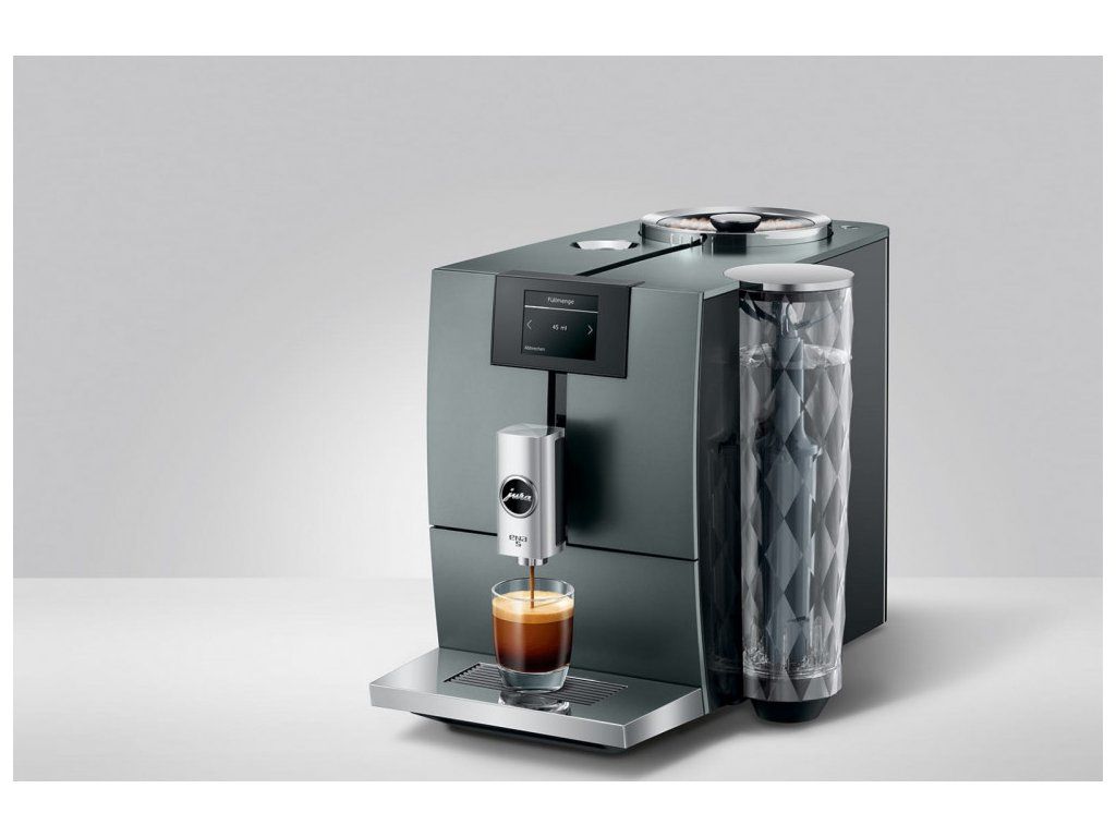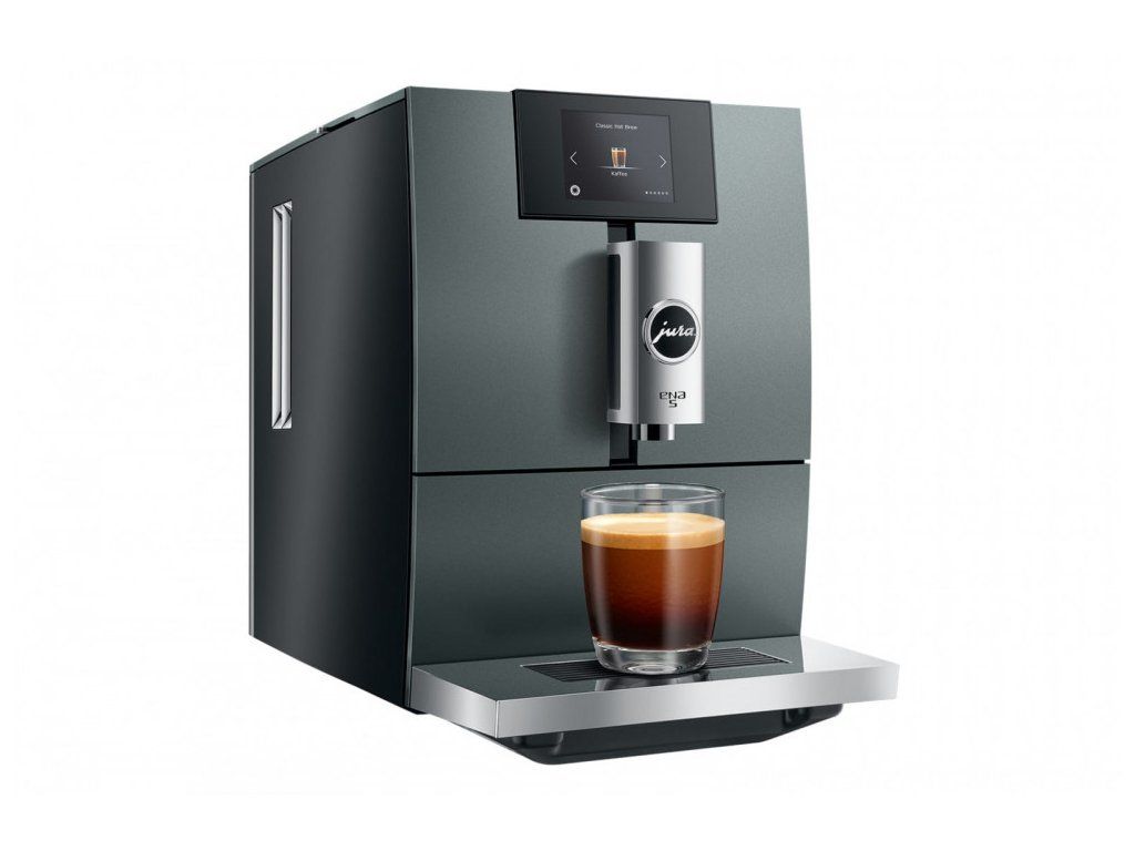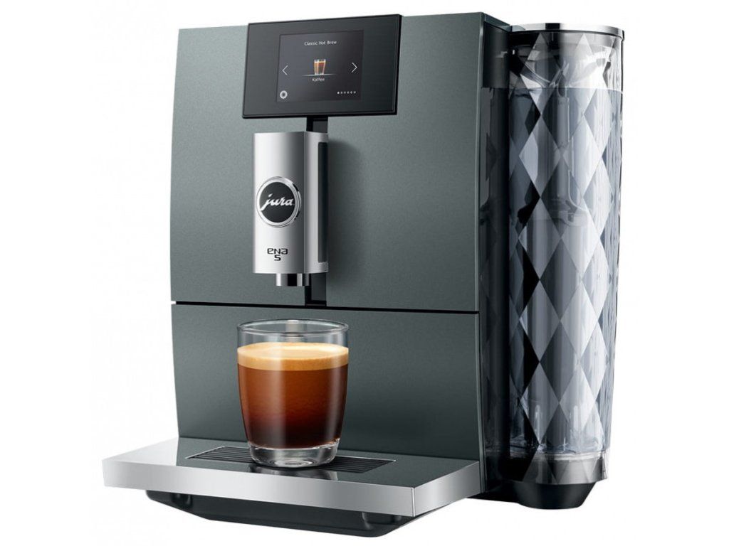 JURA ENA 5 se vyznačuje vysokým standardem kompaktní třídy v kombinaci s inovativními technologiemi JURA. Prezentuje se jako automatický kávovar pouze na kávu, který uspokojí touhu po něčem výjimečném. Dotykový TFT displej ukazuje tři způsoby vaření na různých barvách pozadí a nabízí milovníkům kávy jednoduchý vizuální průvodce nabídkou. Zaoblené designové detaily krytu v kombinaci s přímočarým stylistickým jazykem upoutají pozornost. Tu u upoutá i nádržka na vodu s velkoplošným diamantovým vzorem a chromovaná hubička na kávu.