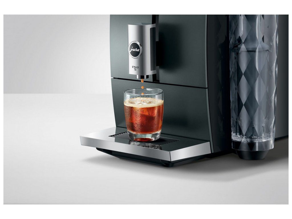 JURA ENA 5 také zasahuje do oblíbeného světa za studena extrahovaných kávových specialit. Připravuje studené nápoje stisknutím tlačítka díky procesu studené extrakce. V plně automatickém procesu studené extrakce studená voda protéká čerstvě namletou kávou a pulzuje nízkou frekvencí pod vysokým tlakem v souladu s metodou espresso. To zajišťuje, že typické ovocné aroma oblíbeného, energii zvyšujícího Cold Brew se naplno projeví.