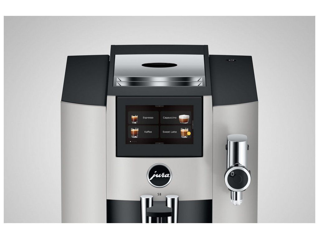 Inovativní koncepce ovládání modelu JURA S8 je jasně srozumitelná. Velkorysý dotykový displej s úhlopříčkou 4,3ˮ umožňuje intuitivně procházet celé menu. Díky grafice a animacím v podobě pokynů, je ovládání naprosto srozumitelné a ukazuje všechny kroky přípravy. Design displeje na jedné straně harmonicky ladí s jasným a výrazným designovým jazykem, na druhé straně zjednodušené uživatelské rozhraní zajišťuje přehledné a pohodlné ovládání automatického kávovaru pro kávové speciality.