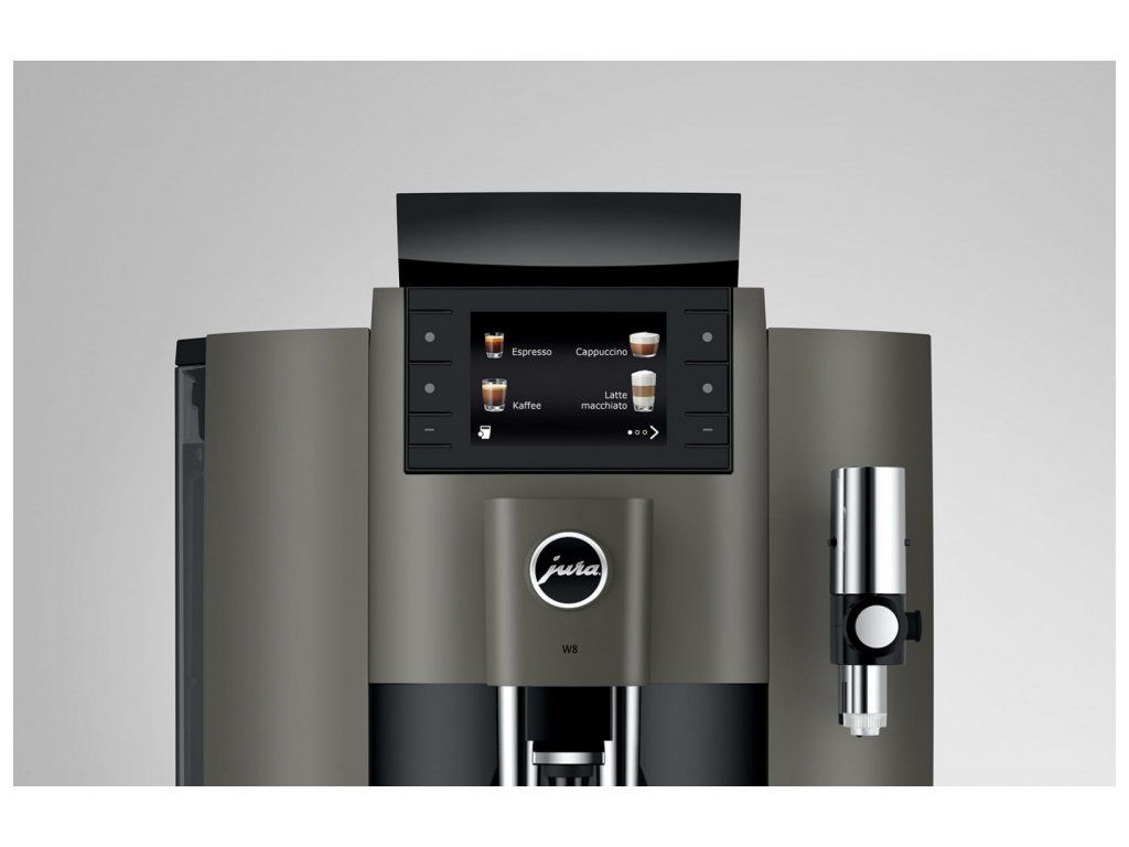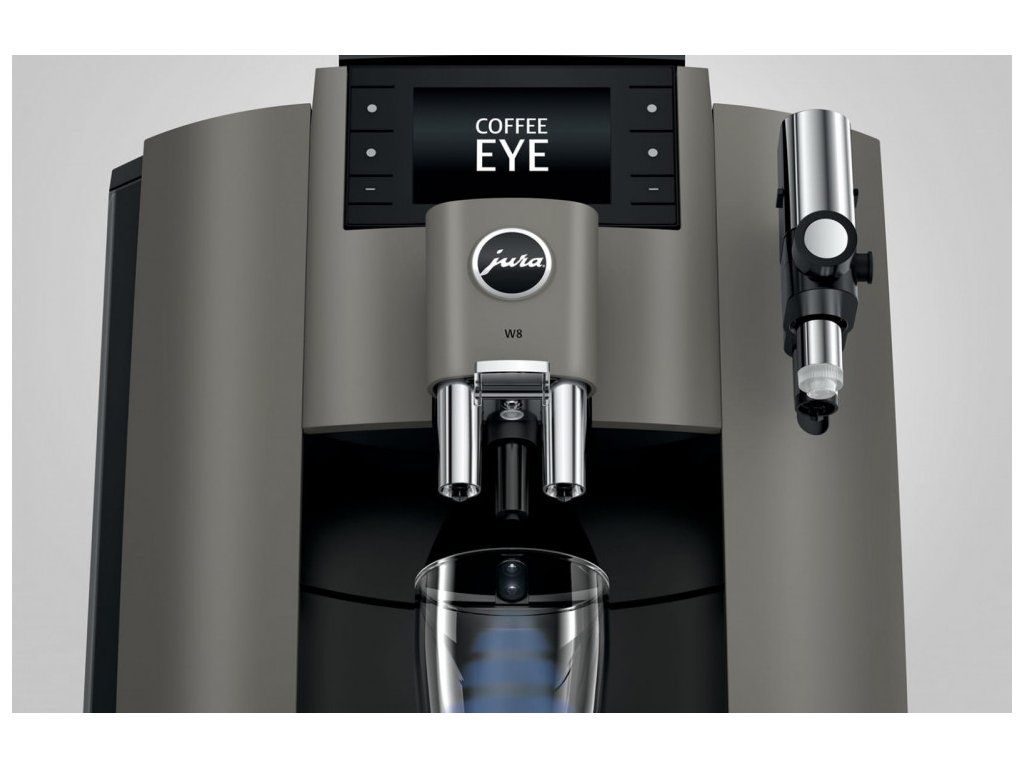JURA W8 vás provede výběrem oblíbených specialit na 3,5palcovém displeji s tlačítky, zatímco integrované Coffee Eye pomáhá uživateli správně umístit šálek. Na výběr je mnoho různých možností přizpůsobení. Obsluha může pomocí funkce zámku snadno spravovat přístup ke kávovaru podle nastavení, ve kterém se používá. Velkokapacitní nádržka na vodu, kterou lze zepředu vyjmout, a snadno přístupná nádoba na zrnka usnadňují údržbu. Zásobník na zrnkovou kávu lze snadno uzamknout.