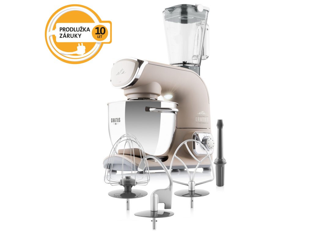 Nedílnou součástí kuchyňského robota ETA Gratus EVO Smart je i kvalitní příslušenství. Mísicí metla je ideální pro dokonalé promíchání lehkých těst na dorty, piškoty nebo třeba lívance. Šlehací metlu využijete pro vyšlehání šlehačky, bílkového sněhu i pro přípravu pomazánek. Hnětací hák vám usnadní přípravu kynutých a hutnějších těst a poradí si tak s chlebem i pořádnou vánočkou.