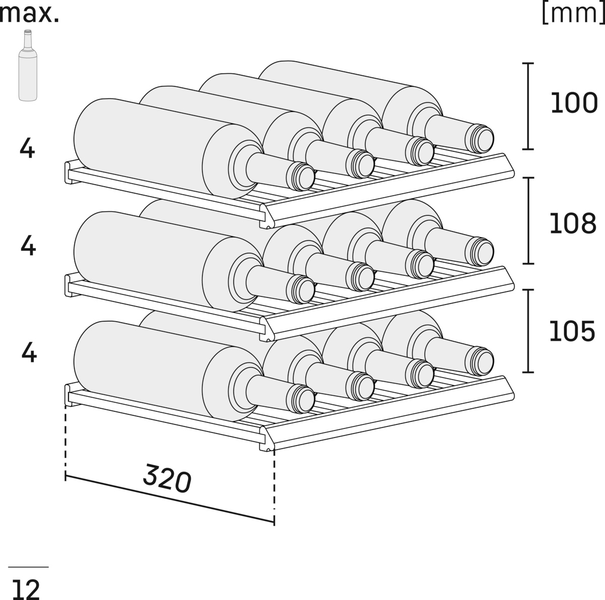 | Maximální počet láhví Bordeaux 0,75 l | 12 |