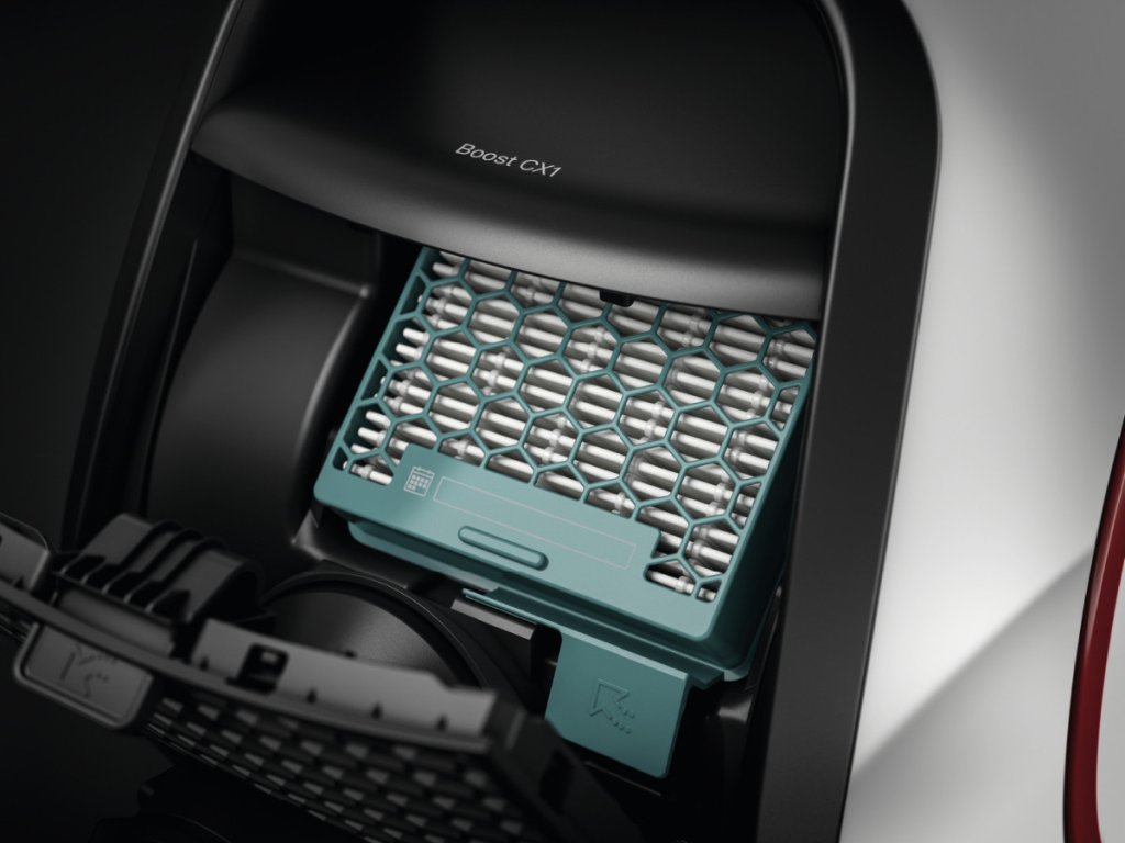 Bezpečné odstavení: díky bočním kolečkům lze vysavač Boost CX1 umístit na jakýkoliv schod.