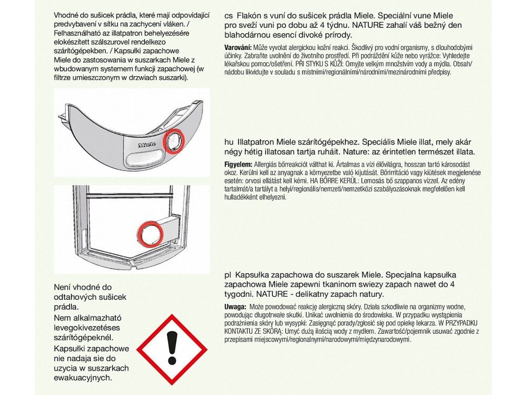 - Pro všechny sušičky Miele T1 s funkcí FragranceDos