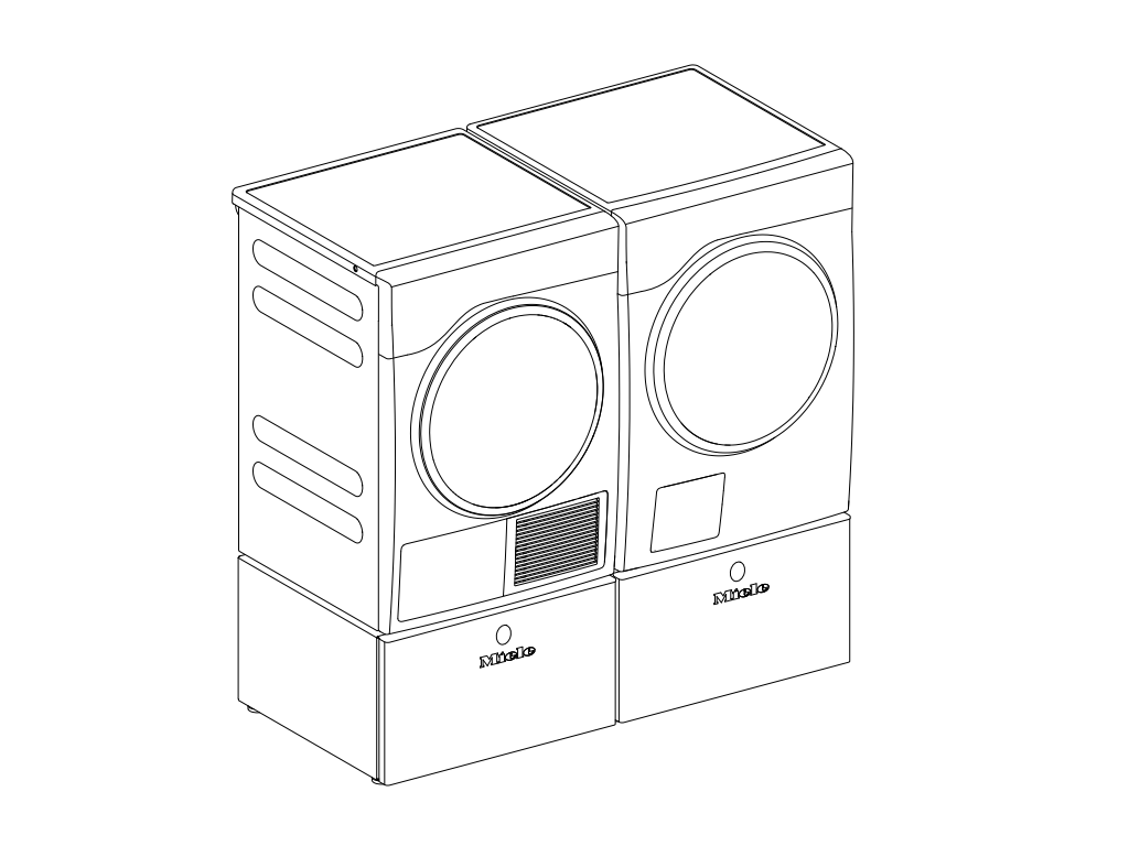 - Vhodné pro pračky Miele: W1, W1 Classic a WT1 (kromě WTZH/WTW) a pro sušičky řady T1 a T1 Classic.