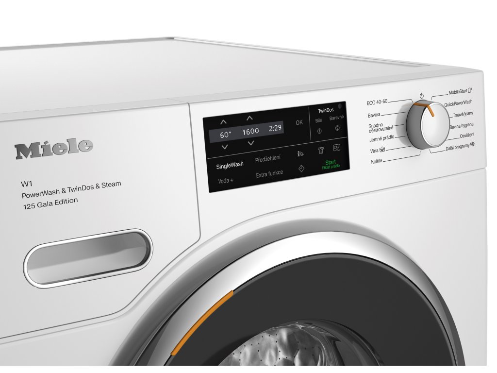 | Lepší výsledek: | CapDosing, SingleWash, Množstevní automatika, Systém Watercontrol (WCS), Patentovaný samočisticí zásobník AutoClean, Předvolba startu a ukazatel zbytkového času, WiFiConn@ct, Patentovaný voštinový buben Miele, TwinDos, Funkce Skvrny |